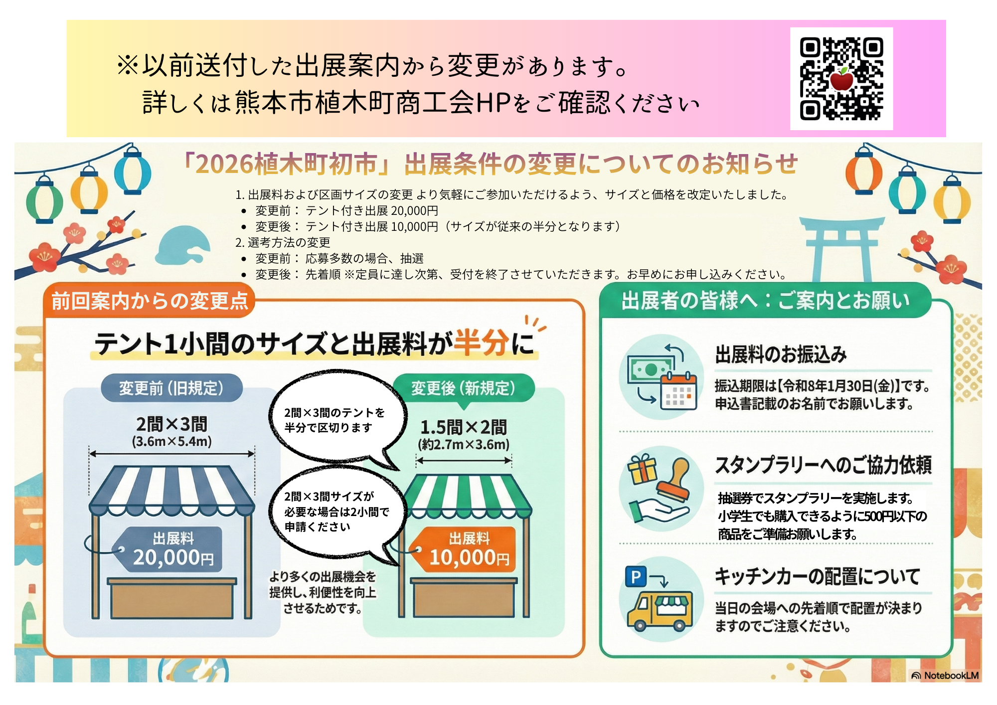 「2026植木町初市」につきまして、より多くの事業者の皆様に出展機会をご提供するため、変更することとなりました。